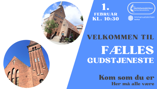 Velkommen til fælles gudstjeneste mellem Baptistkirken og Metodistkirken. Vi skal synge sammen, lovprise sammen, og fejre søndagen sammen og venskabet mellem de to kirker skal nydes. Det hele sker hos os, Hjarnøgade 1, 8000 Aarhus C. Det er klokken 10:30 og DU erLæs resten