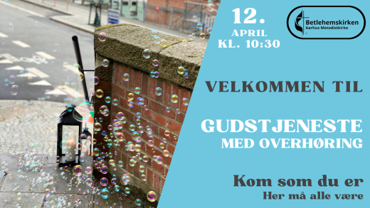 Velkommen til gudstjeneste!Vi skal fejre overhøring (konfirmation) denne søndag. Derudover skal vi synge sammen, lovprise sammen, og fejre søndagen sammen.Det er klokken 10:30 og ALLE er velkomne! Konfirmationen hænger sammen med dåben og fordi man i Metodistkirken ikke bekræfter ens troLæs resten