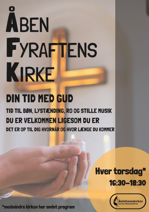Vi vil gerne åbne kirken mere for medlemmer, korfolk, forbipassende og andre der har lyst i løbet af ugen. Derfor holder vi åbnet HVER torsdag fra 16:30-18:30. Kirkerummet er åbent med mulighed for lystænding, bøn og tid med Gud. Der vilLæs resten