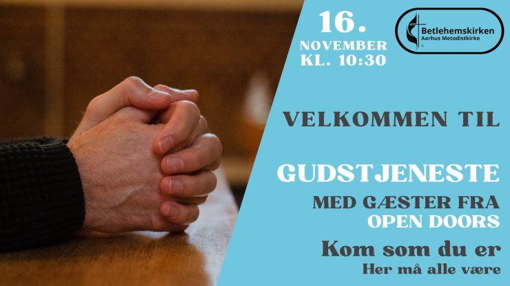 Vi skal synge sammen, lovprise sammen, og fejre søndagen sammen. Gudstjenesten ledes af Maria Thaarup Søndersted og vi får besøg fra Open Doors, der vil fortælle om deres arbejde og stå for prædiken.