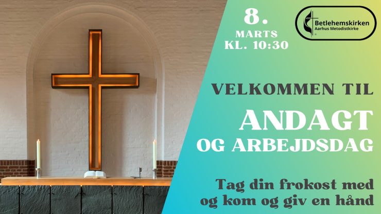Den 8. marts holder vi Andagt og Arbejdsdag. Det er en tradition i Betlehemskirken, at vi i fællesskab får ordnet kirken, så den bliver ved med at være pæn og præsentabel. I år prøver vi noget nyt. Vi holder en lille andagt, arbejder og løser de opgaver der er, og spiser vores medbragte frokost.